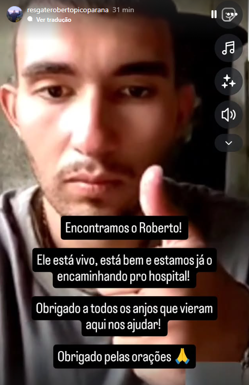 O jovem Roberto Farias Thomaz, que estava desaparecido no Pico Paraná, em Campina Grande do Sul (PR), desde o dia 1º de janeiro, foi encontrado com vida na manhã desta segunda-feira (5).